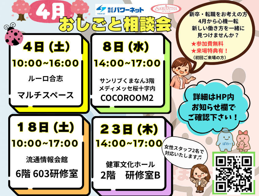 当社では、新年度にお仕事をお探しの皆様を対象に就業相談会を開催いたします。